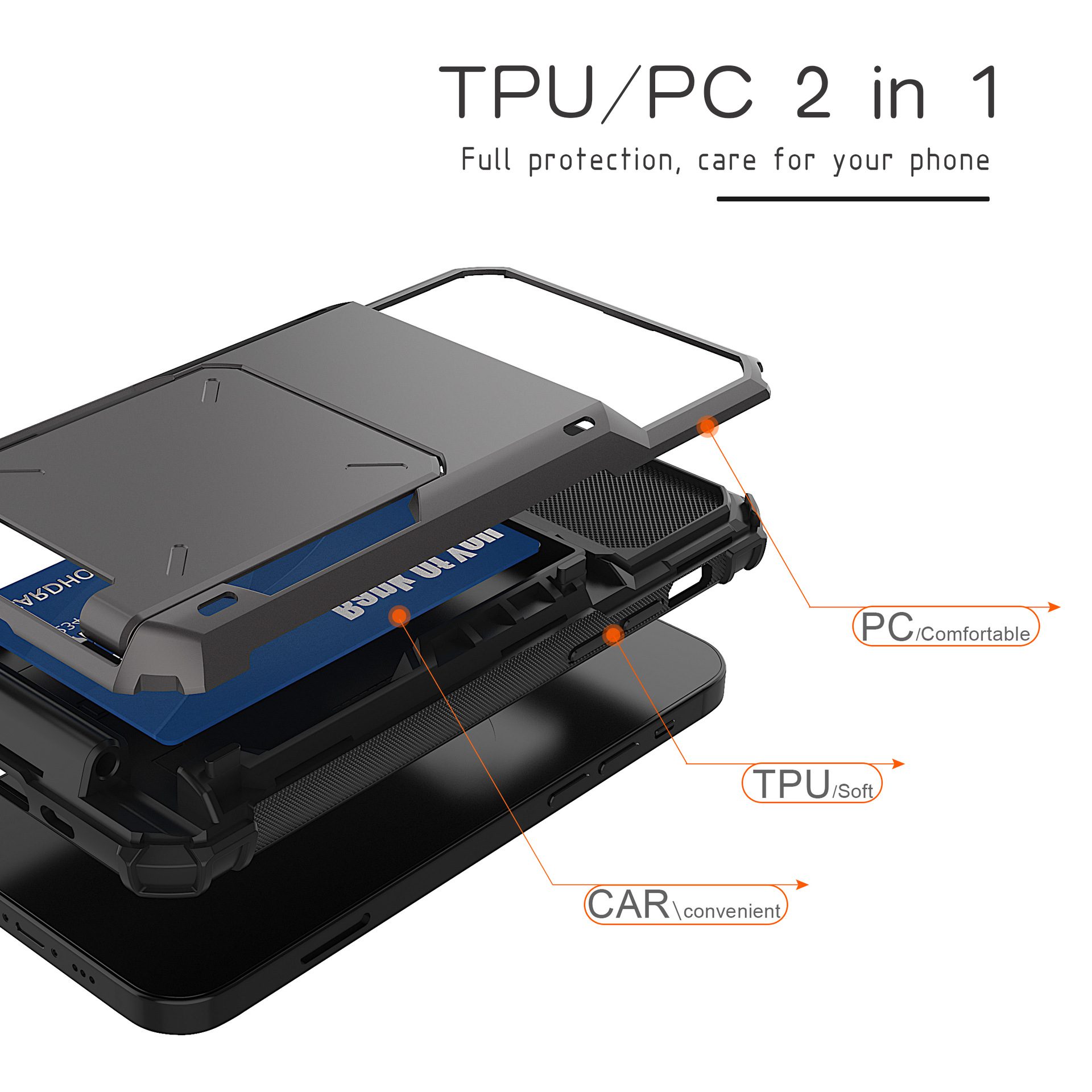منزلق حافظة هاتف رفيعة للغاية مع ظهر بطاقة تخزين غلاف لحامل بطاقات Iphone iphone x