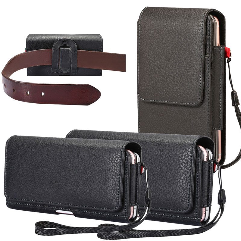 حافظة جلدية بمشبك حزام يونيفرسال مزدوج الحقيبة 5.5-6.9 بوصة لهواتف Samsung iPhone Xiaomi Huawei Sony Nokia Nokia Holster Leather Waist Bag