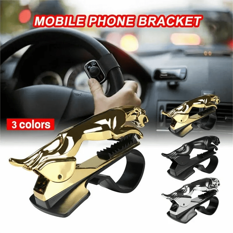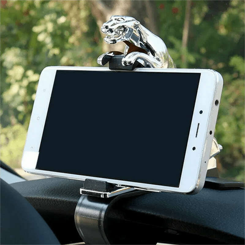 حامل هاتف بمشبك على لوحة أجهزة القياس في السيارة عالمي بنمط الفهد قابل للتعديل بزاوية 360 درجة مع حامل ملاحة GPS للسيارة الذكية حامل الهاتف المحمول على شكل فهد على شكل النمر وحامل ملاحة GPS قابل للدوران 360 درجة