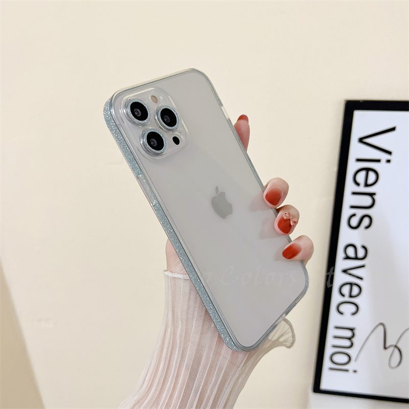 Glitter Galaxy กรอบเคสโทรศัพท์แก้วใสสำหรับ iPhone 14 13 Pro Max Plus 12 Girl Rainbow Luxury Clear Plain Bling น่ารัก
