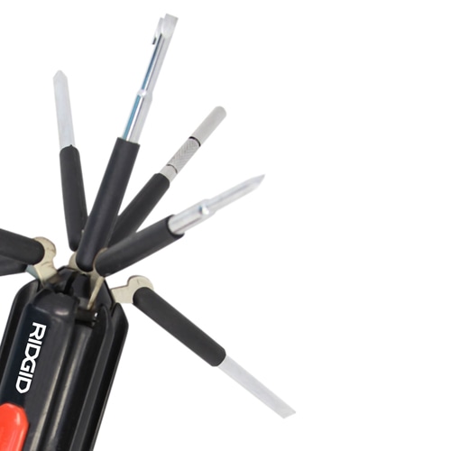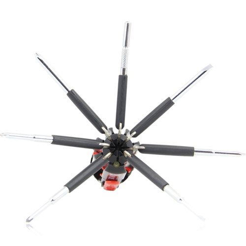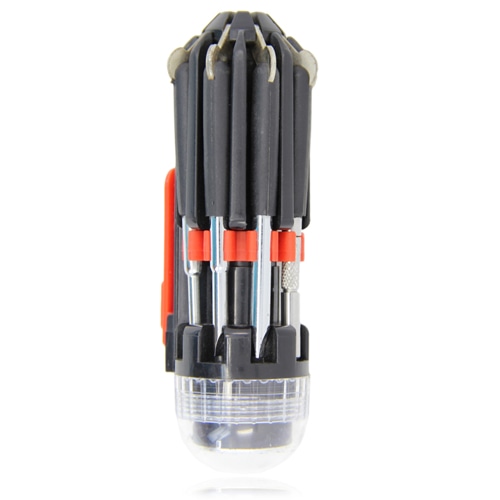 – 8 different screwdriver bits for various screw types.