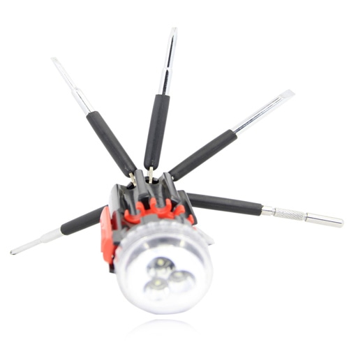 – Bottom screwdriver flashlight for intricate work.