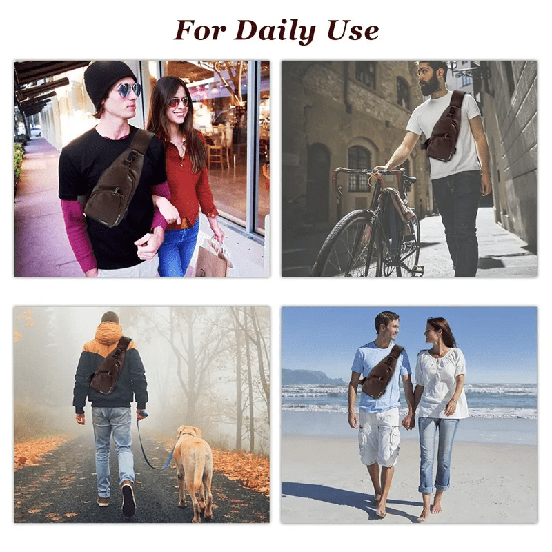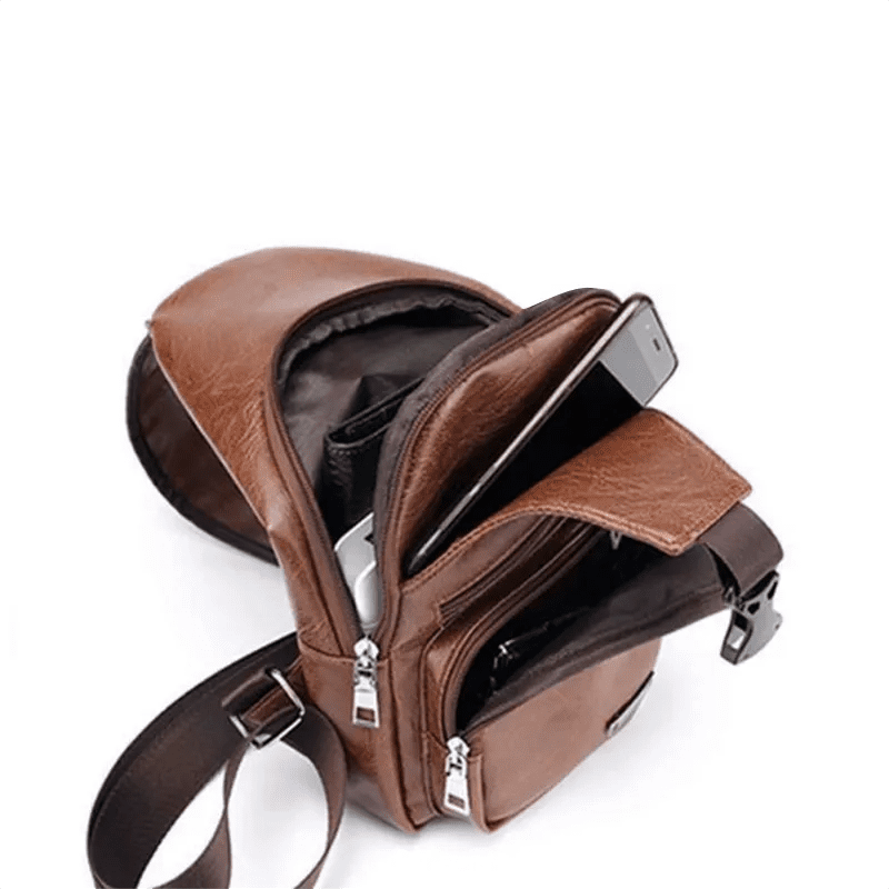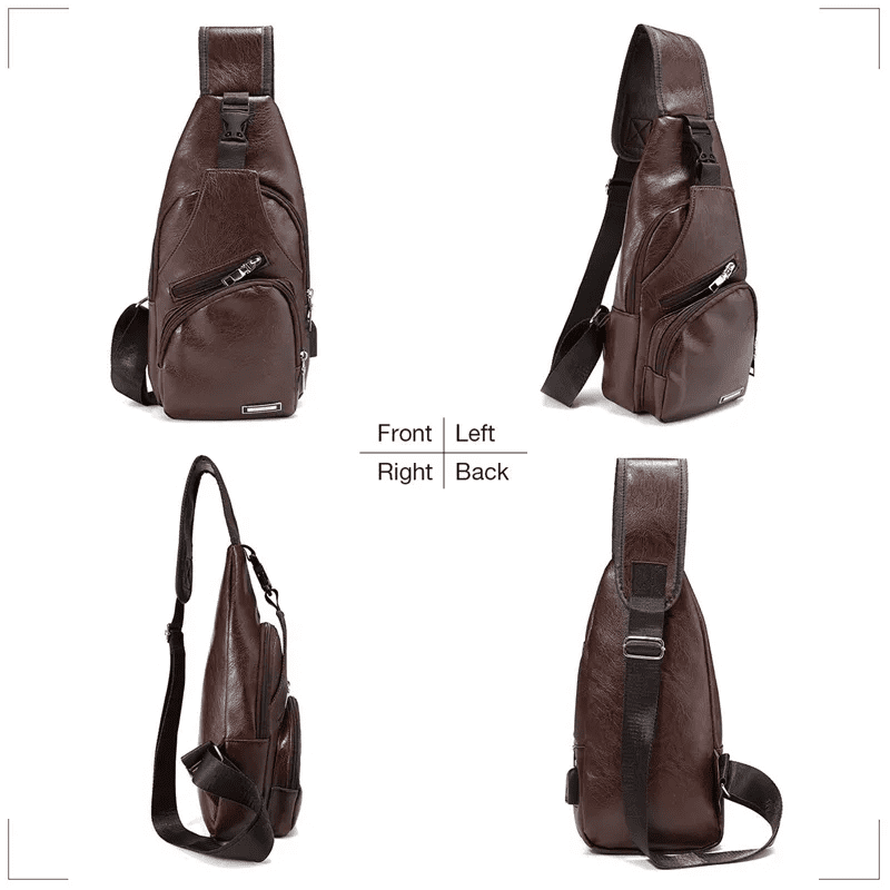 Men’s Chest Bag with Charge Port USB Bag Retro Crossbody Pu Leather Vintage Business Bag Pouch for Sport Dark Brown anti theft backpack with usb charging port