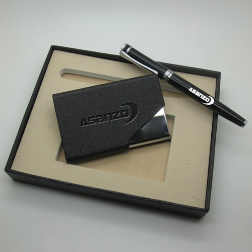 The premium quality card holder included in this set is perfect for organizing business cards, credit cards, or IDs, keeping them safe and easily accessible. Coupled with the executive pen, your customers will have all the essentials they need for their day-to-day tasks in one sleek package.