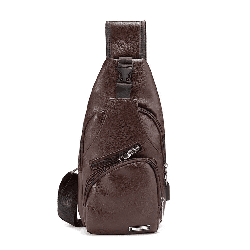 Bolso de pecho para hombre con puerto de carga Bolso USB Retro Crossbody Bolsa de cuero Pu Vintage Business Bag para deporte Mochila antirrobo marrón oscuro con puerto de carga USB