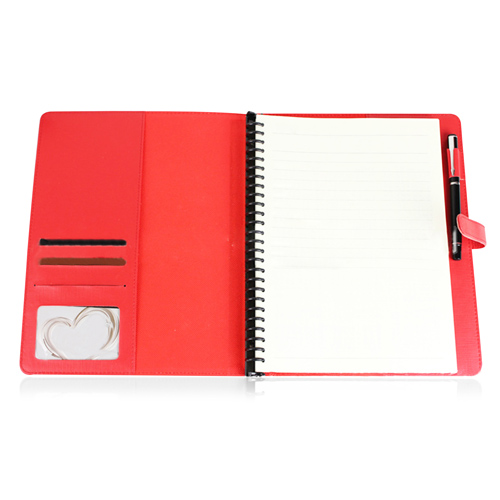 – **Features:** Leather Cover, 6 Hole Metal Ring Binder, A5 Binder, Leather Strap Closer, Pen Loop, Card Slots, Notebook