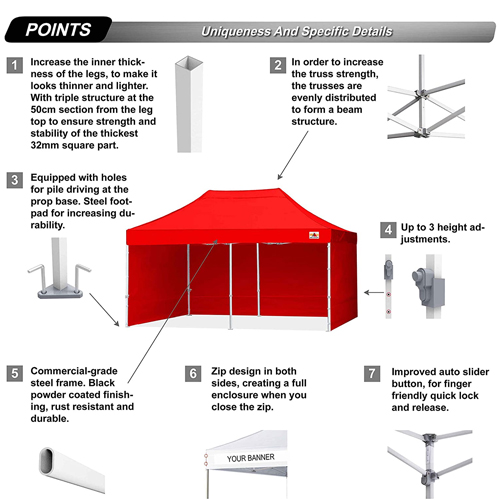 The Promotional Commercial Pop Up Canopy With Sidewalls is not just a canopy; it is a strategic marketing tool that will leave a lasting impression on your target audience. Here are some selling points to consider:
