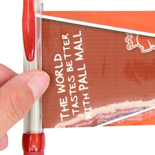 The Scroll Pen goes by various names – banner pen, retractable banner pen, or flag pen. What sets this promotional pen apart is its unique feature of a pull-out banner that provides ample space to showcase your brand message, logo, or contact information.