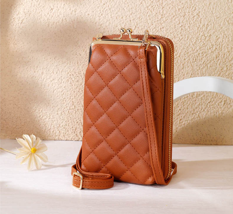 2022 summer new embroidered small ladies mobile phone bag mini messenger bag cross-border fashion shoulder bags Women’s Wallets Mobile Phone Bags Rhombus Plaid Design Embroidered Slash Bags Fashion Shoulder Bags